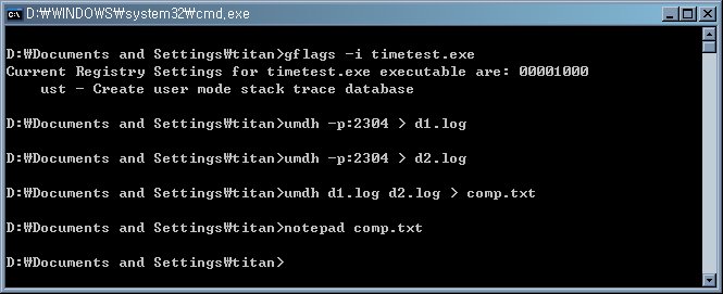 UMDH 실행될때덤프.log 종료되기직전덤프.log > 비교파일.txt